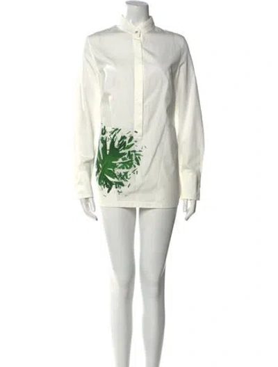 Pre-owned Mock Neck Long Sleeve Button-up Top In White