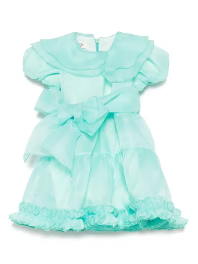 Babies' Ruched Organza Dress In Green