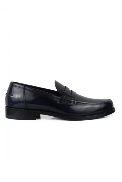 Polished Blue Calfskin Leather Loafers In Black