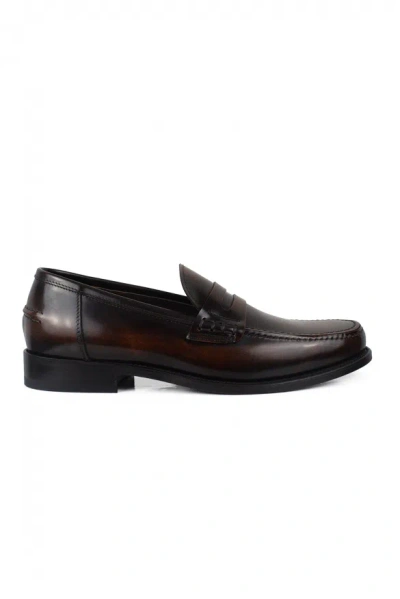 Brown Calfskin Leather Loafers In Multi