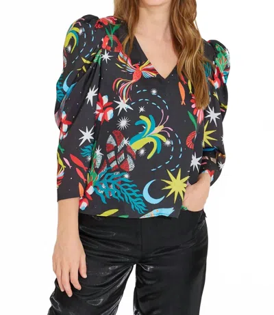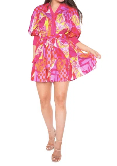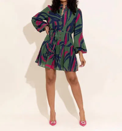 Lydia Mini V Neck Dress In Coastal Icon In Blue