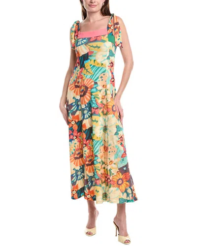 Floral Midi Dress With Crochet Top In Gold With Orange/green/blue Floral In Multi