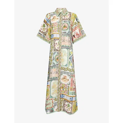 X Alan Berry Rhys Paradiso Tie-belt Midi Shirtdress In Multicoloured