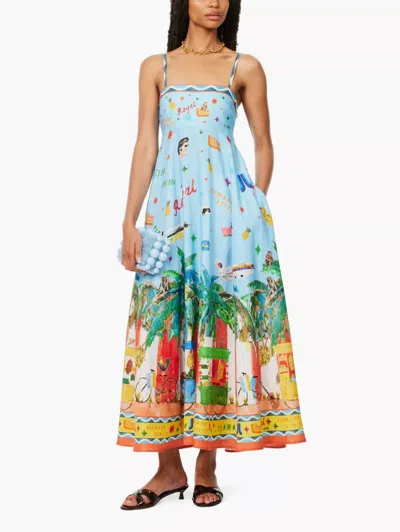 All Aboard Sleeveless Midi Dress In Blue Multi