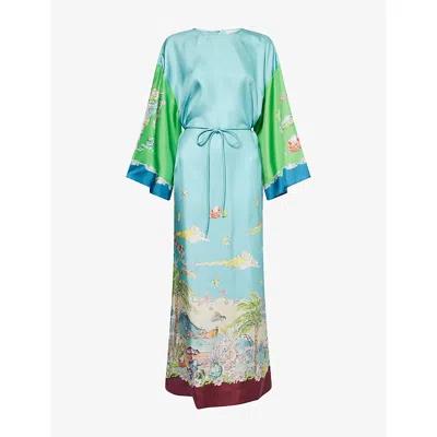 Womens Daria Graphic-print Silk Midi Dress Multi In Blue