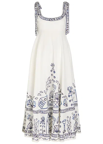 + Lrnce Mina Embroidered Ramie Midi Shirt Dress In White
