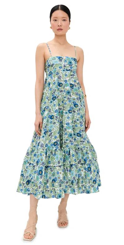 Pam Tiered Pintucked Floral-print Organic Cotton-poplin Midi Dress In Blue