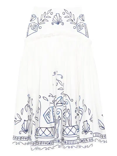 X Lrnce Leela Pleated Printed Maxi Skirt In White