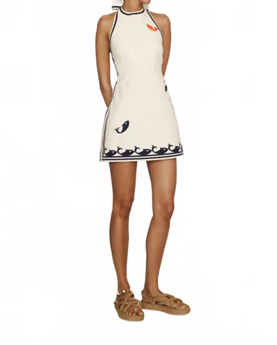 Marine Embroidered Printed Organic Cotton Halterneck Mini Dress In White