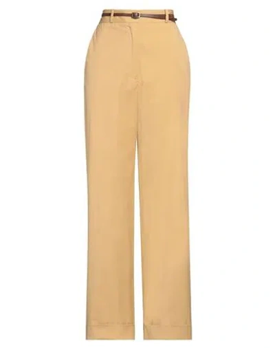 Woman Pants Camel Size 8 Cotton, Elastane In Brown