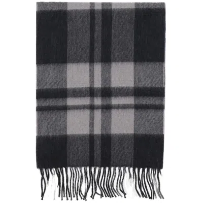 Cashmere Scarf With Timeless Check Pattern In Gray