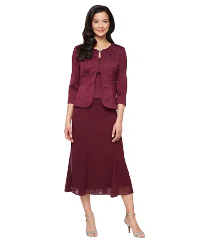 8225949 Short Cocktail Petite Mother Of The Bride Tea Length Jacket Dress In Burgundy