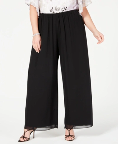 Plus Size Embellished-sleeve Draped Chiffon Gown In Black