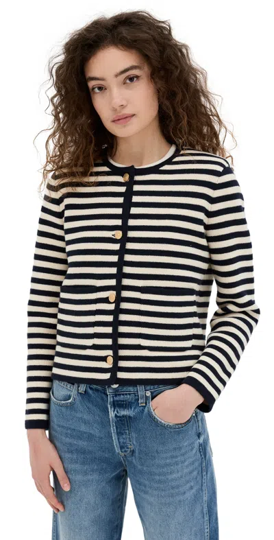 Easy Ruffle Shirt In Skinny Stripe In Navy/white