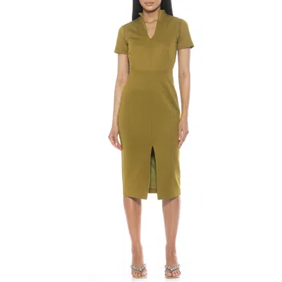 Atlas V-neck Sheath Midi Dress In Beige Floral