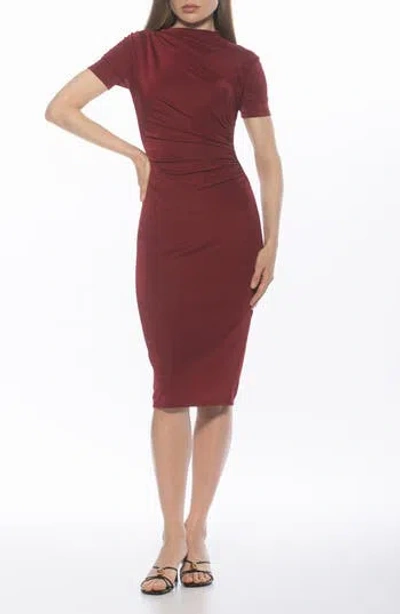 Harper Short Sleeve Midi Sheath Dress In Burgundy