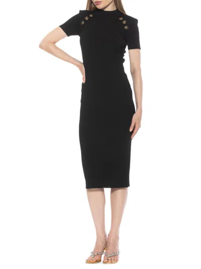 Skylar Asymmetric Neck Short Sleeve Midi Dress In Black