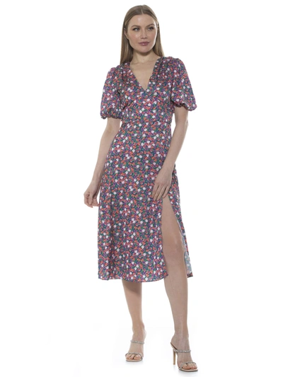 Janine Crewneck Draped Midi Sheath Dress In Ivory Floral