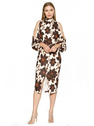 Women's Cold Shoulder Jersey Dress In Beige Multicolor