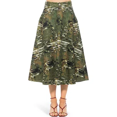 Isla Flared Cotton Blend Midi Skirt In Blue Paisley