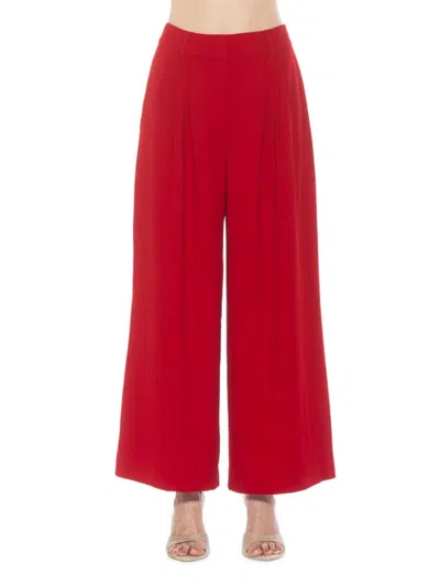 Luca High Waist Pleated Faux Leather Skirt In Red