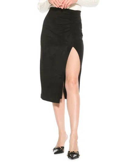 Zayla Faux Suede Pencil Skirt In Burgundy