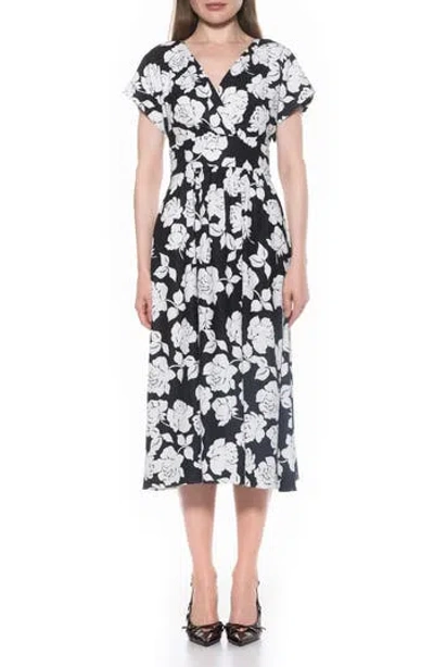 Iris Smocked Short Sleeve Midi Dress In Navy