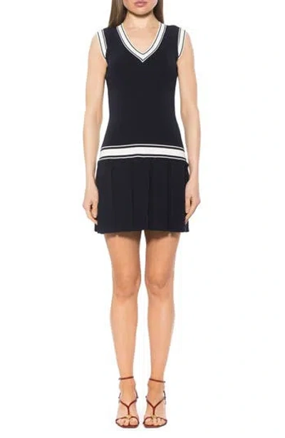 Suri Draped One-shoulder Minidress In Navy Polka Dot