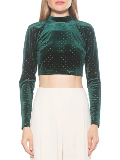 Women's Ari Polka Dot Velvet Crop Top In Emerald
