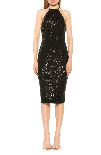Letitia Halter Sequin Midi Cocktail Dress In Black