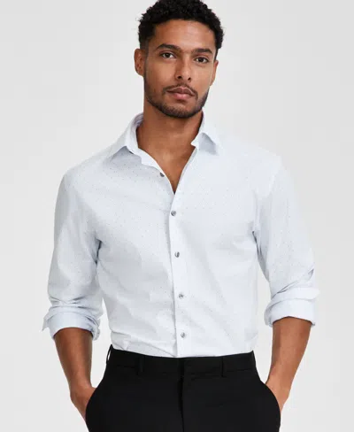 Men's Regular-fit Temperature Regulating Geo-print Dress Shirt, Created For Macy's In White