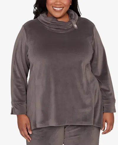 Plus Size Calm Luxe Cowl Neck Top In Gray