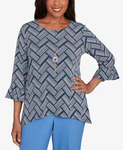 Petite Austin Diamond Geometric Heat Set Knit Top In Blue