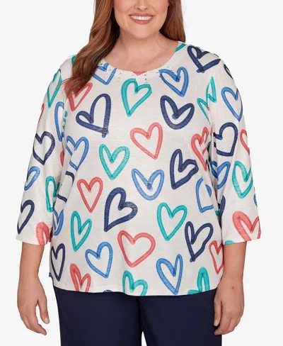 Women's Saratoga Springs Tossed Heart Pattern Knit Top In White