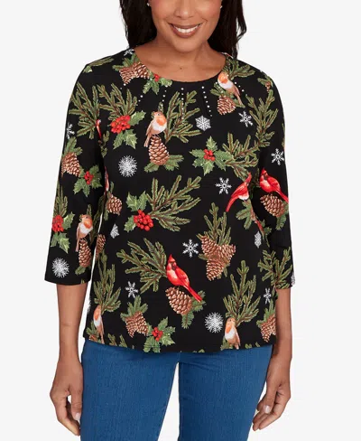 Women's Classic Cardinals And Pinecones Embellished Top In Black