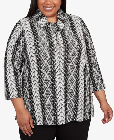 Plus Size Jet Setter Cable Jacquard Knit Top With Necklace In Gray