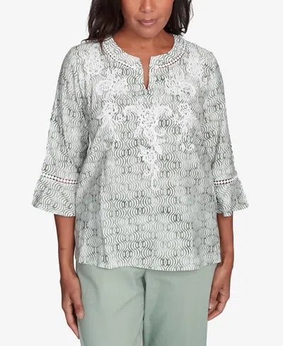 Women's Santa Fe Embroidered Geometric Flare Sleeve Top In Green