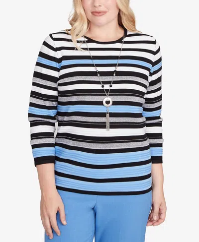 Plus Size Jet Setter Knit Colorblock Top With Necklace In Multi