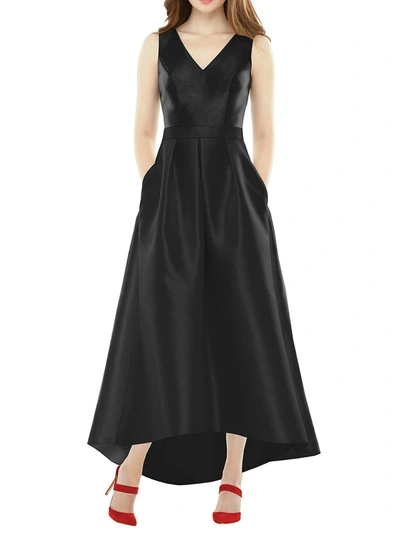 V-neck Halter Satin Trumpet Gown In Black