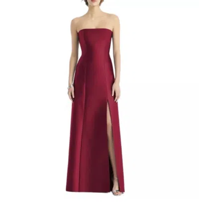Strapless Satin Gown Formal Dress In Burgundy In Red