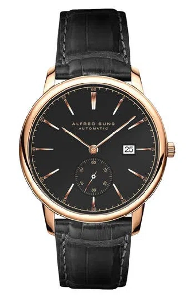 Swiss Heritage Leather Strap Watch, 42mm In Black