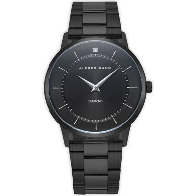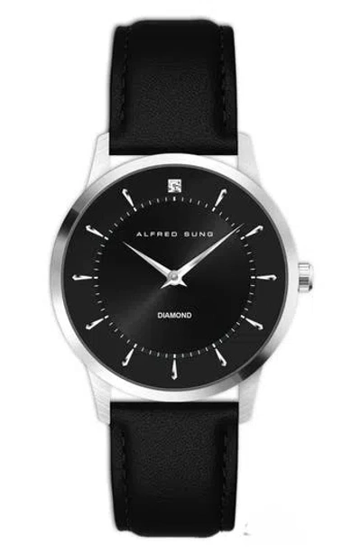 Diamond Dial Leather Strap Watch, 42mm In Black Strap Black Dial