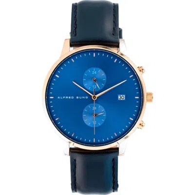 Dual Time Leather Strap Watch, 42mm In Blue