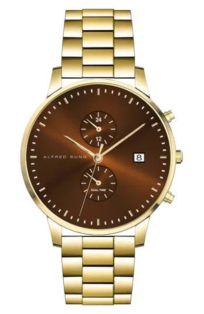 Dual Time Quartz Bracelet Watch, 42mm In Gold Bracelet Brown Dial