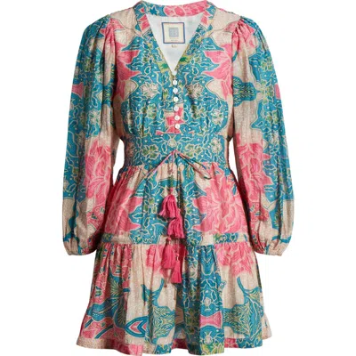 Stevie Long Sleeve Belted Cotton & Silk Cover-up Minidress In Multi