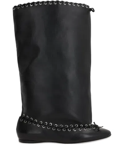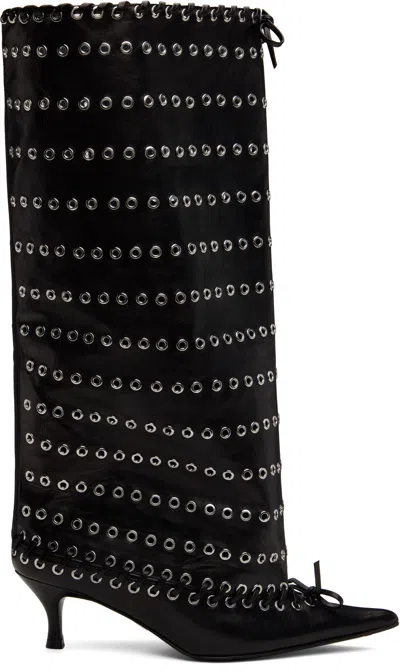 60mm Leather Grommets-embellished Boots In Black