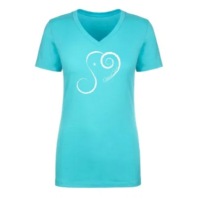 Women's Elephant Spirit Cotton Blend V-neck Short Sleeve T-shirt In Aqua In Blue