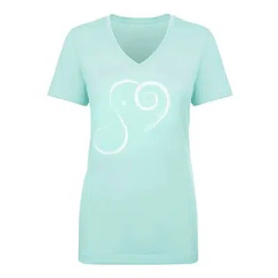 Women's Elephant Spirit Cotton Blend V-neck Short Sleeve T-shirt In Mint Green In Blue