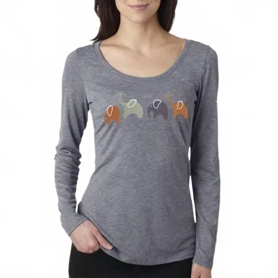 Womens Happy Elephant Family Long Sleeve Scoop Neck T-shirt In Gray