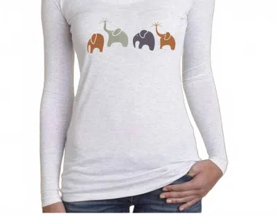 Womens Elephant Spirit Long Sleeve Scoop Neck Tee In Heathered White